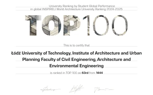 Image Instytut Architektury i Urbanistyki PŁ na liście TOP100 w INSPIRELI World Architecture University Ranking