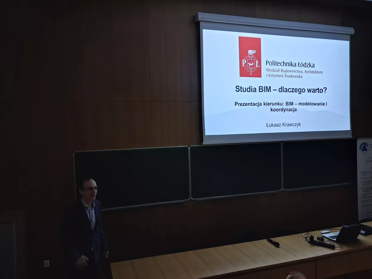 W pierwszym dniu wydarzenia odbyło się stacjonarne spotkanie na naszym Wydziale, w ramach którego zostały przedstawione prezentacje o technologii BIM i nie tylko, a po prezentacjach odbył się panel dyskusyjny, podczas którego zostały poruszone kwestie takie jak korzyści i zagrożenia, jakie niesie ze sobą cyfryzacja czy spojrzenie na przyszłość BIM.
