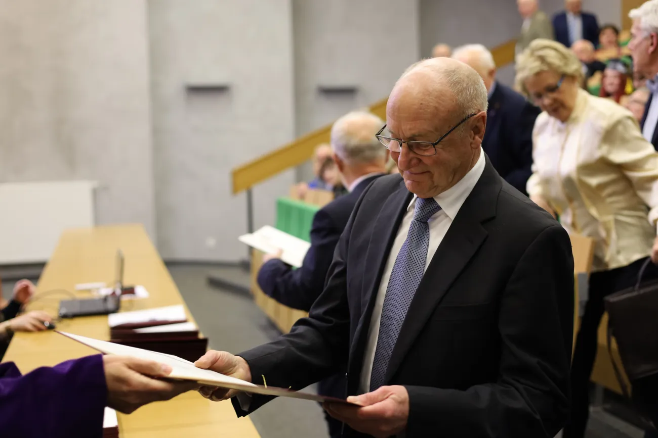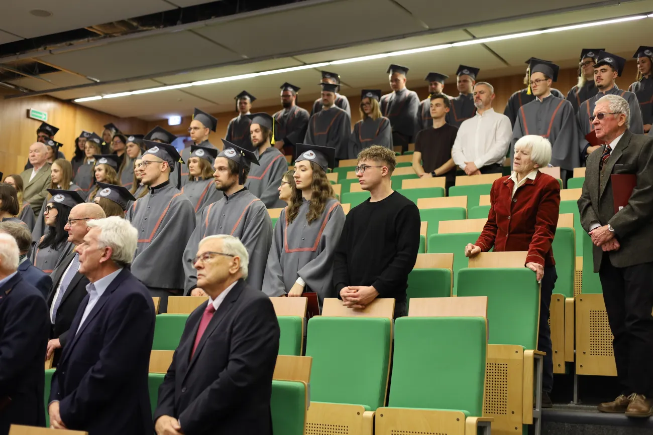 15 grudnia na naszym Wydziale miała miejsce wyjątkowa uroczystość. 22 absolwentów z roku 1975 odebrało Złote Dyplomy z okazji 50-lecia ukończenia studiów, a 43 absolwentów studiów II stopnia kierunków architektura, budownictwo i inżynieria środowiska w budownictwie roku akademickiego 2024/2025 otrzymało pamiątkowe certyfikaty ukończenia studiów.
