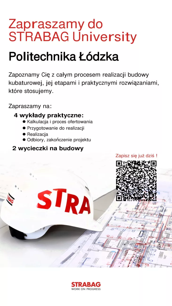 Z radością informujemy, że już wkrótce na Politechnice Łódzkiej rozpocznie się program Strabag University – wyjątkowy projekt prowadzony we współpracy między firmą STRABAG Sp. z o.o., a naszym Wydziałem.